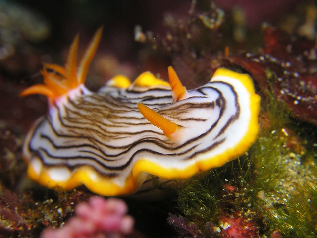 出逢ったのはクロスジウミウシです。毎年この時期に見れてるウミウシですが、今年は