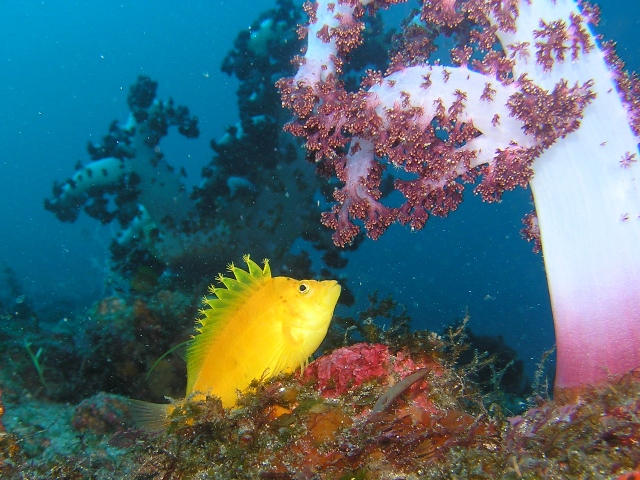 大島のオキゴンベは伊豆半島の個体に比べると黄色が強く、このようにちょっと輝いて