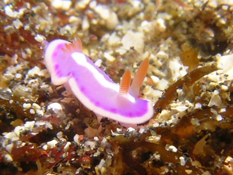 シモダイロウミウシに似てますが、図鑑によると虹鰓を囲むように白線が延びてない事で