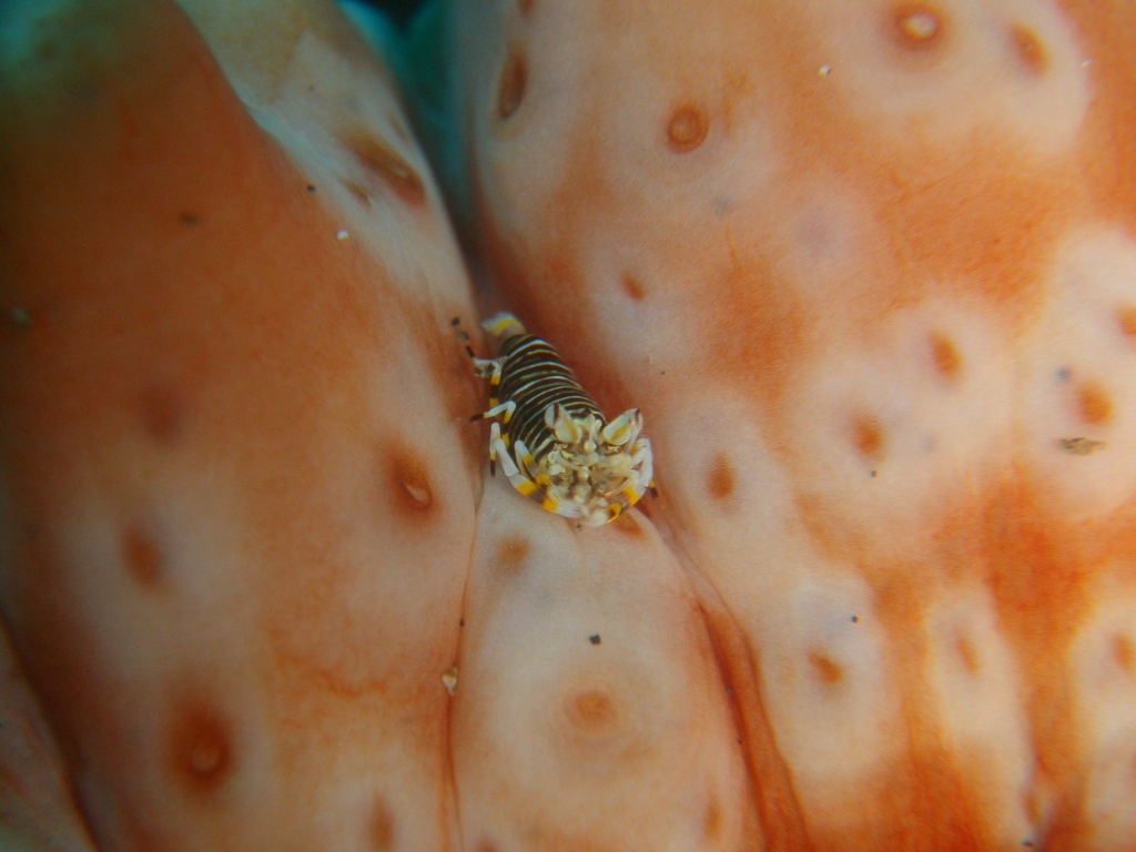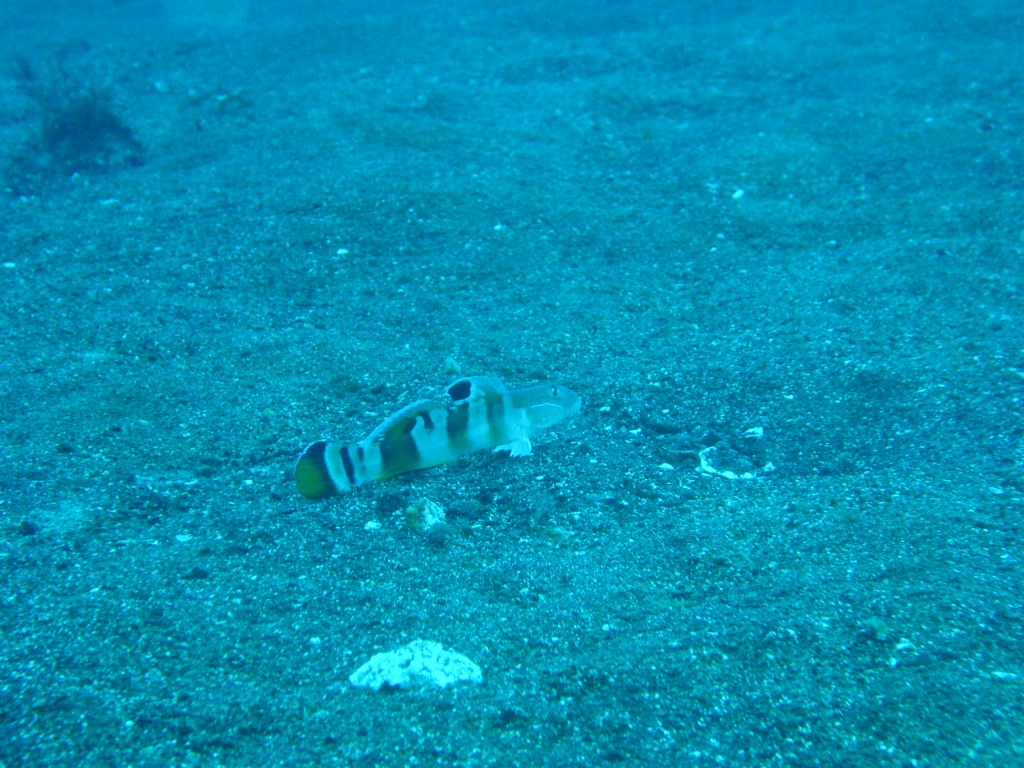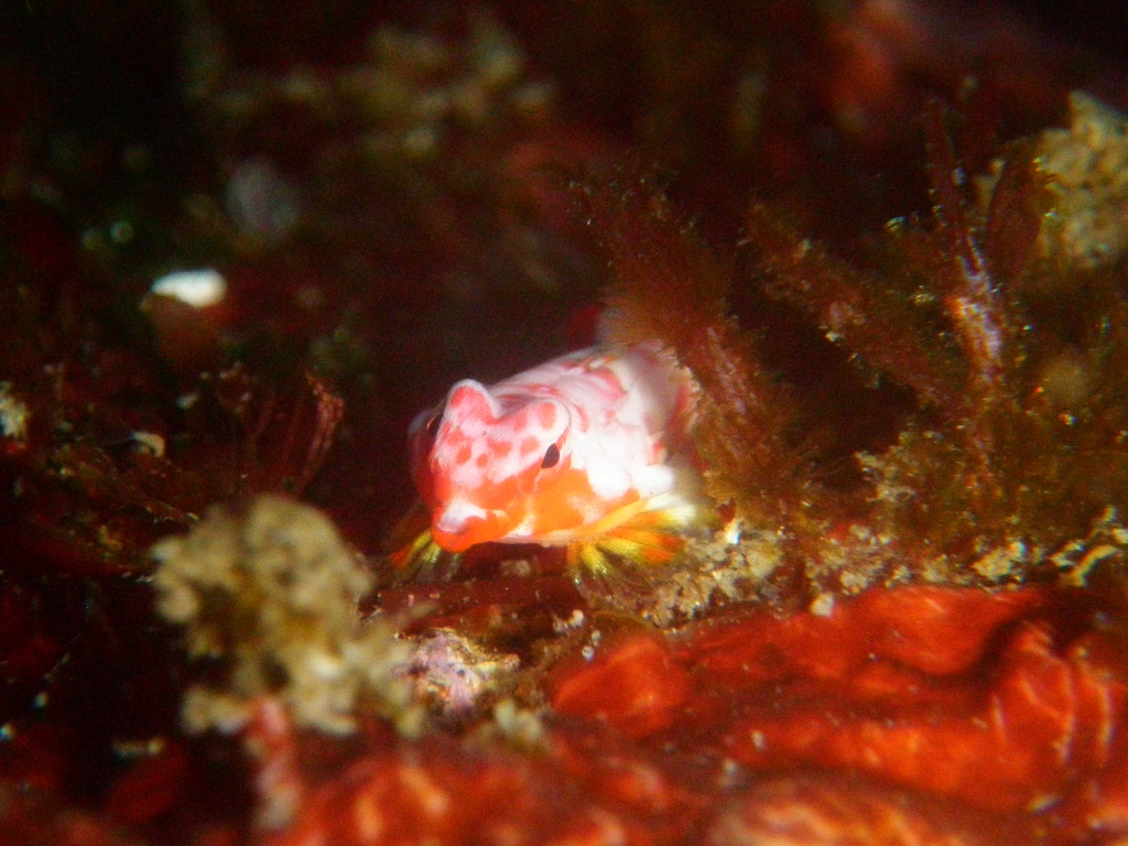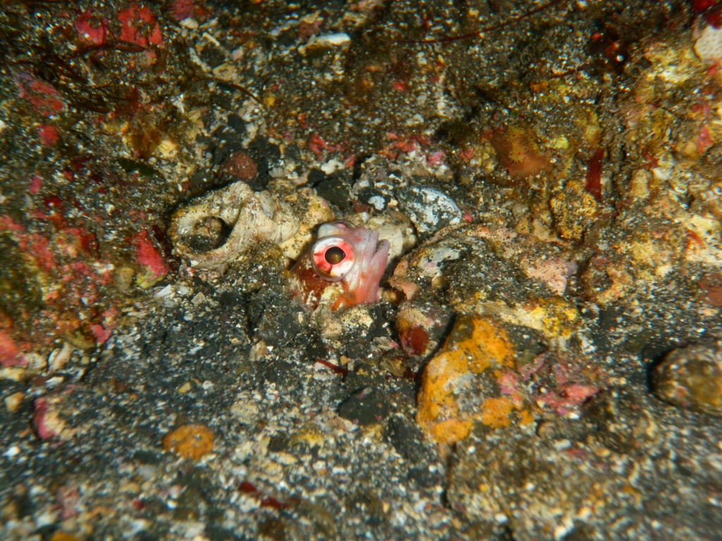 普段なら浅場の亀裂や石の裏とかで見かけますが、今日はナマコの裏に潜んでいました。