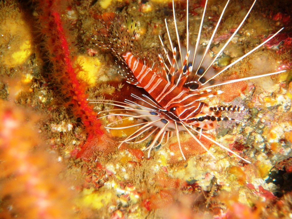 昨日に比べるとやや透明度が上がった感じです。早朝と昼の2回潜ってます。