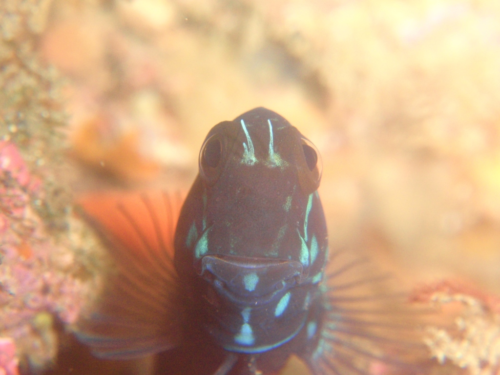 テンクロスジギンポを接写!相変わらずヒョウキンな顔した魚ですが、