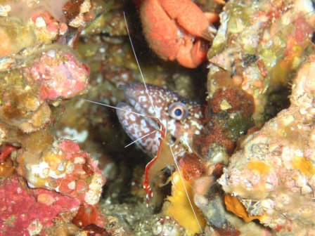 1個体はロープエンド付近の穴の中、もう1個体は沖へ向かう途中の穴です。